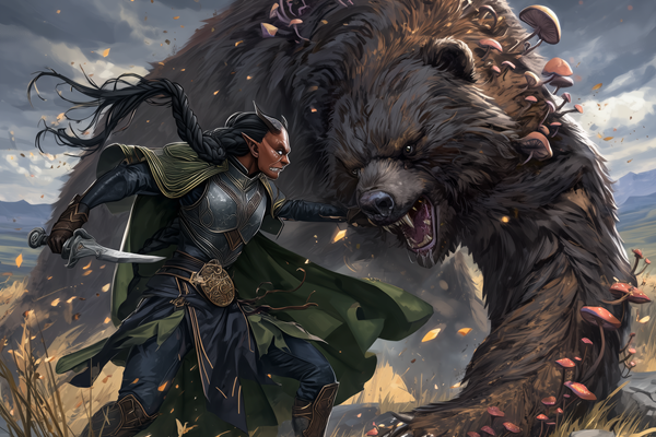 Daro battles the entangled bear.