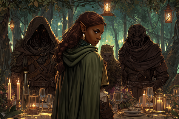 After the battle with the skeletons, Gelardia reappeared from her communion with her patrons. She remembered it only in patches, like a dream. The Three hosted her in some kind of dinner with strange etiquette and peppered her with questions about her current quest. In exchange they offered a glimpse into her future, describing five paths she might take, each with a different companion: