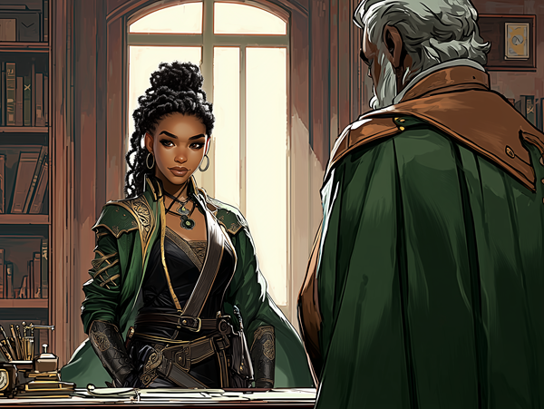 The party then travelled to the opulent Viridian Palace, Nyx having been summoned by her father. While the party was entertained by "Uncle Florian", Nyx was being questioned about why she had not attended lessons with The Master of Whispers as she was instructed. The true Master of Whispers attended the meeting and was not, in fact, the tutor Nyx had been studying with. Confusion led to frustration on the part of all parties, and Nyx was dismissed. Meanwhile Florian seemed interested in the party's adventuring life, having always wanted to be an adventurer. He narrowly missed an opportunity to join the party on their voyage before the party left the palace.